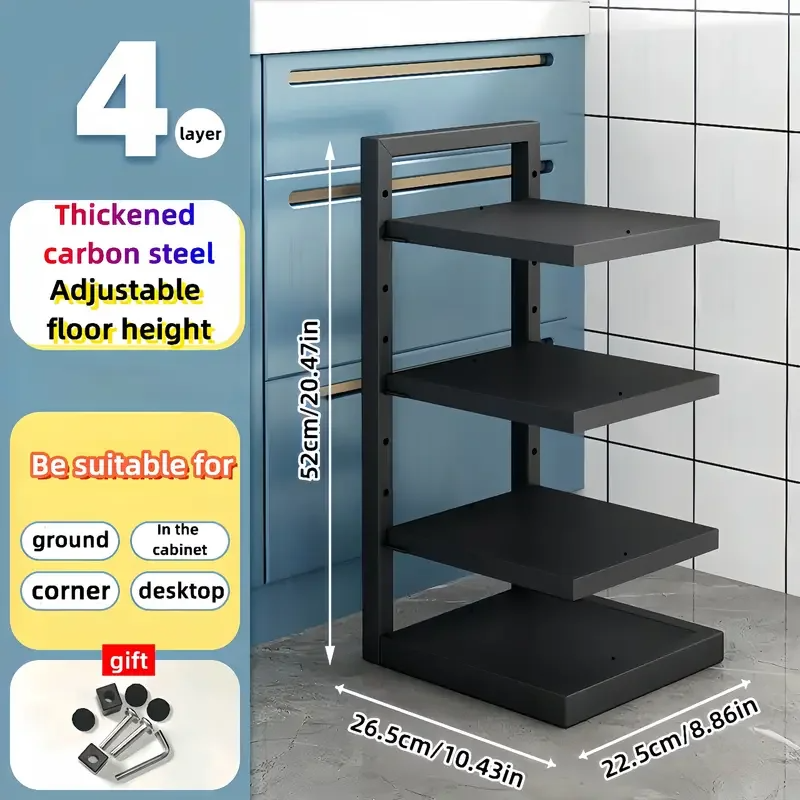 Kitchen Organizers › Adjustable Pot Rack Organizer, Kitchen Stainless Steel Pot Storage Rack ,Multi-Layer Household Pot and Pan Organzier for Kitchen Image 1 of 8 Image 2 of 8 Image 3 of 8 Image 4 of 8 Image 5 of 8 Image 6 of 8 Image 7 of 8 Image 8 of 8 Adjustable Pot Rack Organizer, Kitchen Stainless Steel Pot Storage Rack ,Multi-Layer Household Pot and Pan Organzier for Kitchen from $10.39 SPECIFICATIONSBrand Name: NoEnName_NullChoice: yesHign-concerned Chemical: NoneMaterial: Carbon SteelOrigin: Mainland China Color: Select Color 4 Tier Black 4 Tier 5 Tier Black 5 Tier 2 Tier Black 2 Tier 3 Tier Black 3 Tier Add To Cart Added! SPECIFICATIONSBrand Name: NoEnName_NullChoice: yesHign-concerned Chemical: NoneMaterial: Carbon SteelOrigin: Mainland China