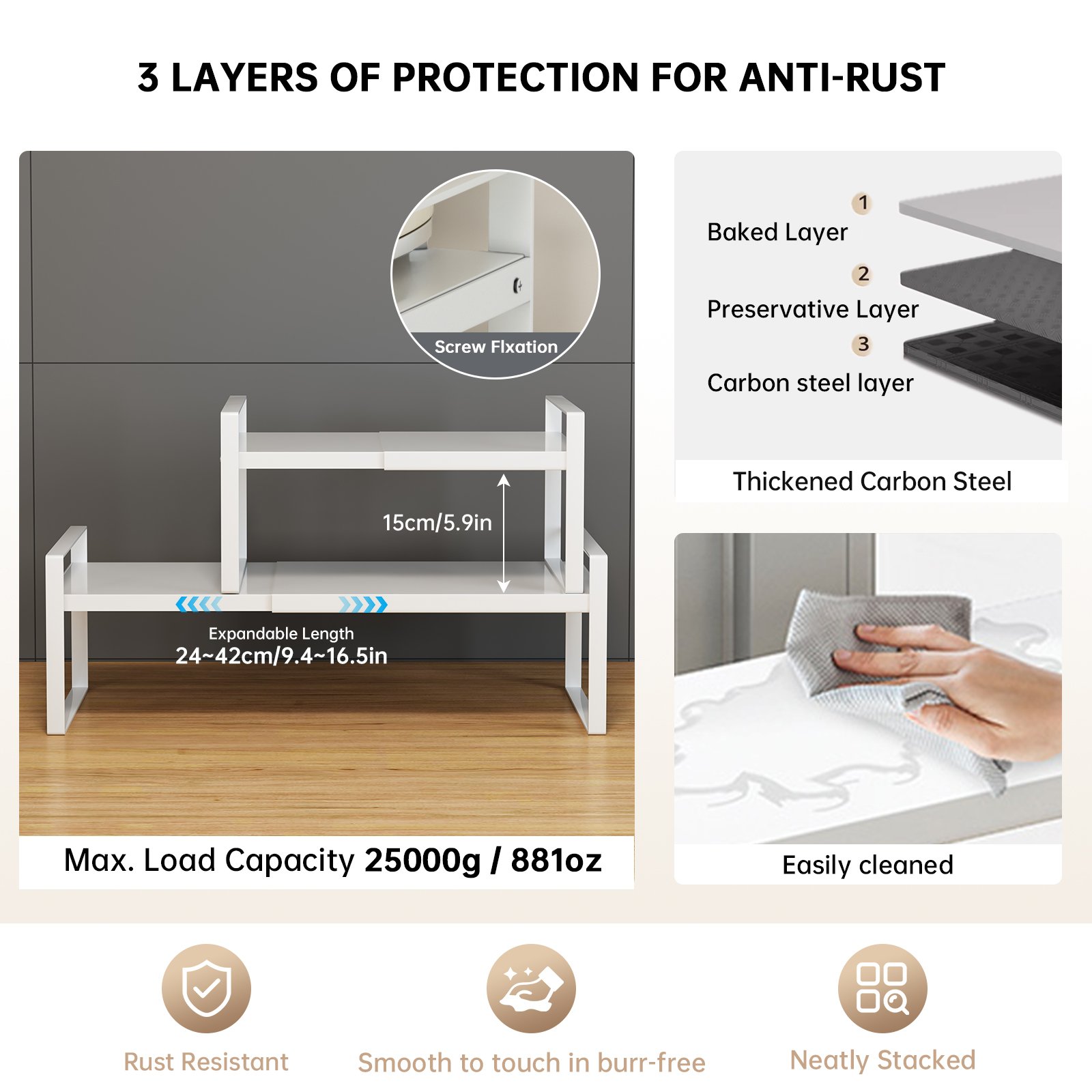 Kitchen Organizers › Kitchen Storage Rack under the Sink Cabinet Layered Rack Countertop Desktop Retractable Cabinet Dish Storage Rack Home Image 1 of 9 Image 2 of 9 Image 3 of 9 Image 4 of 9 Image 5 of 9 Image 6 of 9 Image 7 of 9 Image 8 of 9 Image 9 of 9 Kitchen Storage Rack under the Sink Cabinet Layered Rack Countertop Desktop Retractable Cabinet Dish Storage Rack Home from $0.00 SPECIFICATIONSBrand Name: NoEnName_NullChoice: yesHign-concerned Chemical: NoneMaterial: MetalOrigin: Mainland China Color: Select Color Small Large Exter Large Add To Cart Added! SPECIFICATIONSBrand Name: NoEnName_NullChoice: yesHign-concerned Chemical: NoneMaterial: MetalOrigin: Mainland China